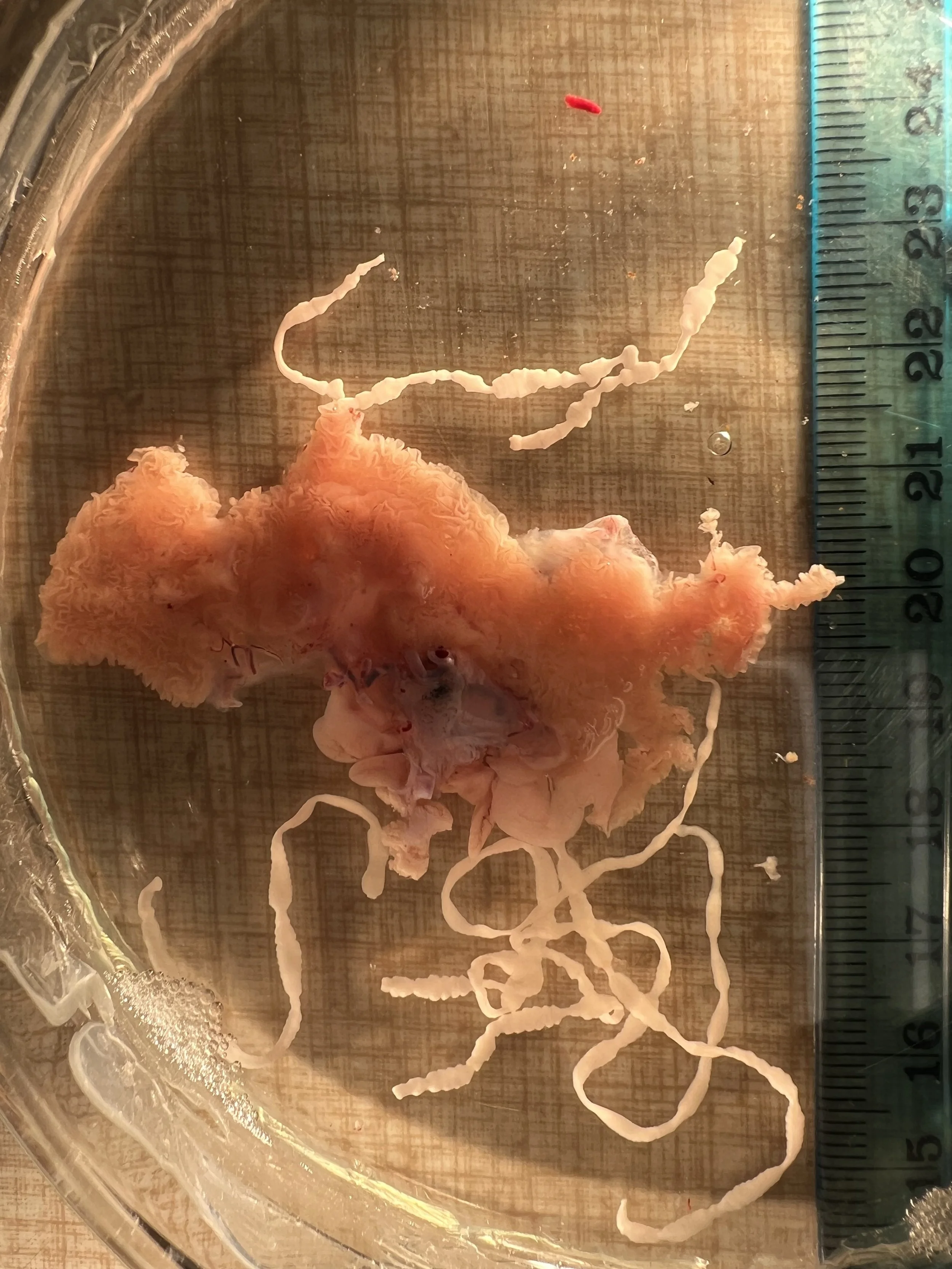 In addition to the systematics and evolutionary history of herps, I am also interested in pursuing these questions using the flatworm parasites infecting them. THe majority of my work comprises the blood flukes that infect freshwater turtles (Schistosomatoidea). But the short time in the Great Plains has revelaed fascinating infections in many snake species by mouth digeneans (Renifer), and crazy tapeworms (picture above - Oochoristica sp. infecting a Prairie Rattlesnake). Publications coming soon!